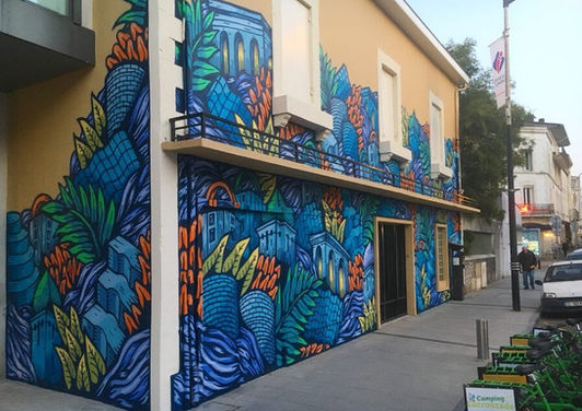 Mural painted on a building wall during the Muralis Festival